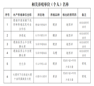 2023年第一季度,云南省农业农村厅在全省范围内随机开展农产品质量安全例行监测,抽检发现有6份水产品(鲤鱼、鳙鱼、乌...