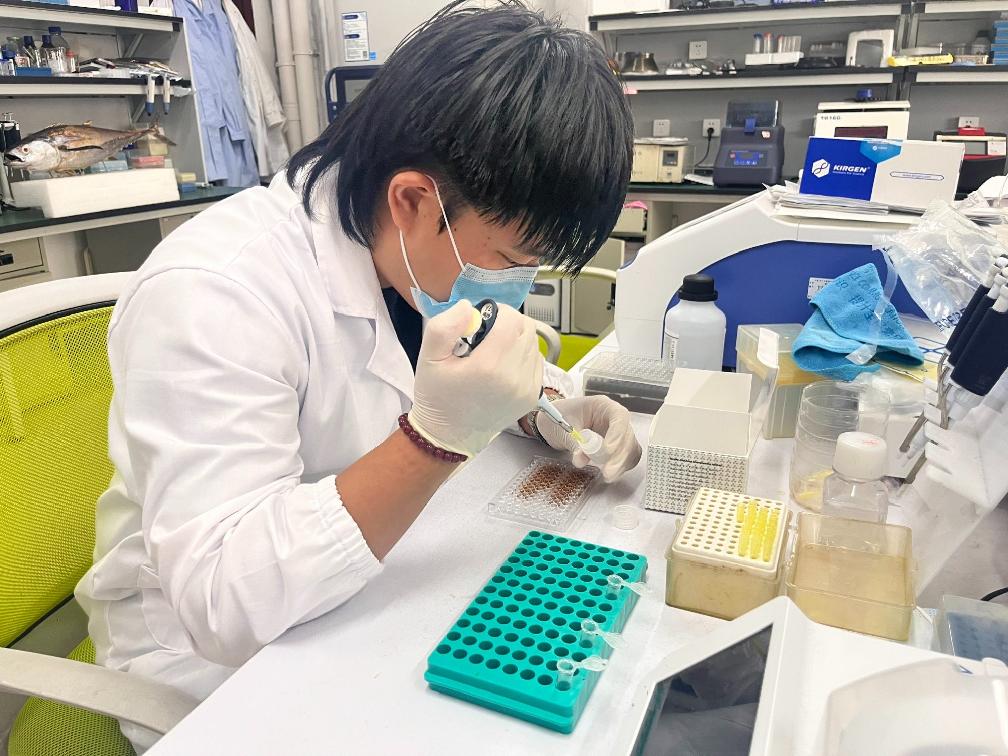 2016年,中国水产科学研究院南海水产研究所深远海养殖技术与品种开发创新团队马振华研究员率先在南海进行金枪鱼诱捕养殖试验。2022年,团队在陵水成功捕获黄鳍金枪鱼野生幼苗,并在外海海域进行驯养,在国内率先突破了黄鳍金枪鱼网箱养殖技术。2023年,陵水农投海洋水产发展有限公司和中国水产科学研究院南海水产研究所(以下简称水科院南海所)开启全面合作,双方共同推动黄鳍金枪鱼人工养殖技术落地转化。
